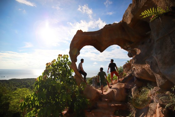 Disela kesibukan photo shoot di Java Paradise Resort Karimunjawa, kami menyempatkan diri untuk menjelajah di pulau ini. Beruntung penjelajahan kali ini difasilitasi oleh Java Paradise Resort, terimakasih yaa:) . Spot pertama yg kami kunjungi adalah bukit cinta ( bukit love ). konon kabarnya, jika kesini bersama pasangan, hubungan kalian akan langgeng selamanya, cieehh.. Sayang nya kita semua pada para jomblo sementara, karena pasangan nya ditinggal di Bali. Bukit love ini menyuguhkan pemandangan laut secara 180 derajat dari atas bukit. Yang paling menarik adalah goa yg menyerupai “love” dengan background laut dan sunset! Sungguh luar biasaaa!