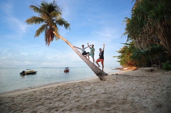 Setelah puas berfoto ria, kami langsung lanjutkan perjalanan menuju Tanjung Gelam. Pantai ini terkenal dengan icon pohon kelapa nya yg miring ke arah pantai, suasana yg tenang dan nyaman memuat tempat ini layak buat dikunjungi terutama bagi yang sedang galau, hehehe..